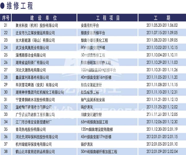 - 煙囪新建宏順建設(shè)工程有限公司是一家專業(yè)從事煙囪新建,煙囪防腐,煙囪內(nèi)壁防腐,煙囪脫硫防腐,磚煙囪新建,水泥煙囪新建,鋼煙囪新建,水泥煙囪防腐,混凝土煙囪新建,煙囪拆除,煙囪維修,煙囪脫硫防腐等工程!咨詢熱線:13770071688。